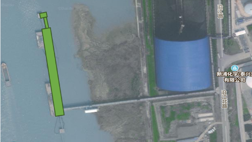新浦化学(泰兴)有限公司口岸限定区域:新浦一号、新浦二号码头开放泊位作业平台整体区域和过船二期通用码头新浦化学(泰兴)有限公司开放泊位作业平台外侧2米宽度区域。(图中绿色区域部分)