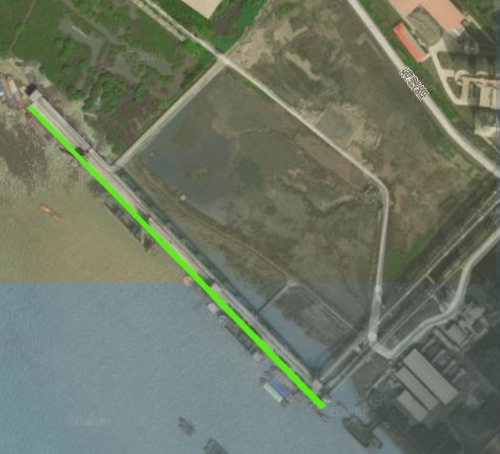 泰州高港港务有限公司口岸限定区域:高港码头开放泊位作业平台外侧2米宽度区域。(图中绿色区域部分)