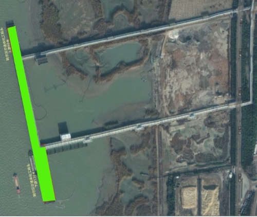国家能源集团泰州发电有限公司口岸限定区域:国电码头开放泊位作业平台外侧2米宽度区域。(图中绿色区域部分)