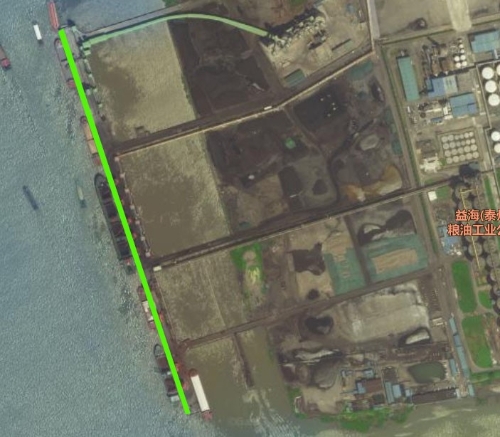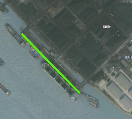 泰州市海螺水泥有限责任公司口岸限定区域:海螺码头开放泊位作业平台外侧2米宽度区域。(图中绿色区域部分)